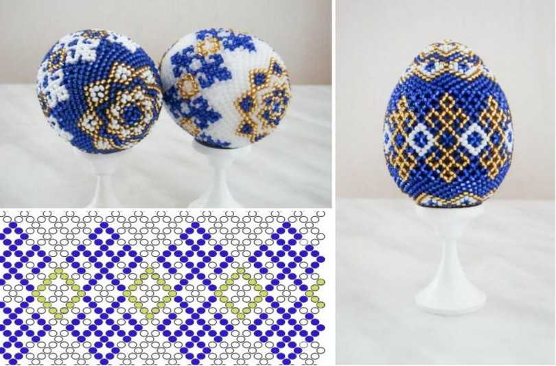 Бисерное яйцо «Гжель» Схема плетения и описание — два варианта