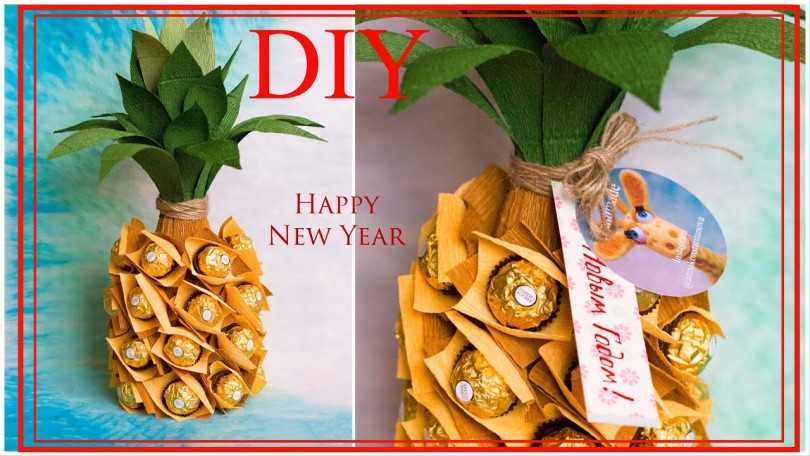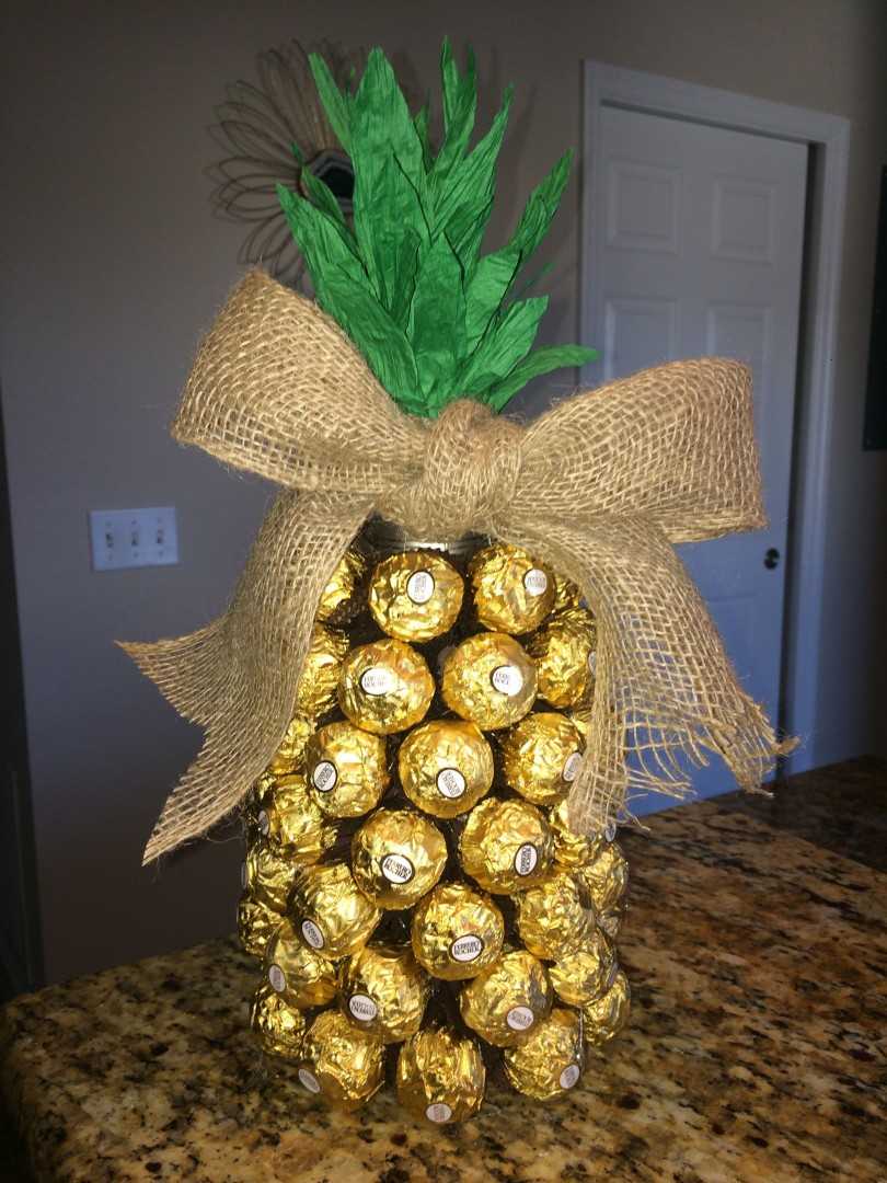 Ананас всегда считался особенным фруктом, особенно в северных странах. Эффектно он смотрится в качестве украшения праздничного стола. Но сегодня обычным ананасом никого не удивить, а вот стилизованный под него подарок, еще и сделанный своими руками – другое дело.