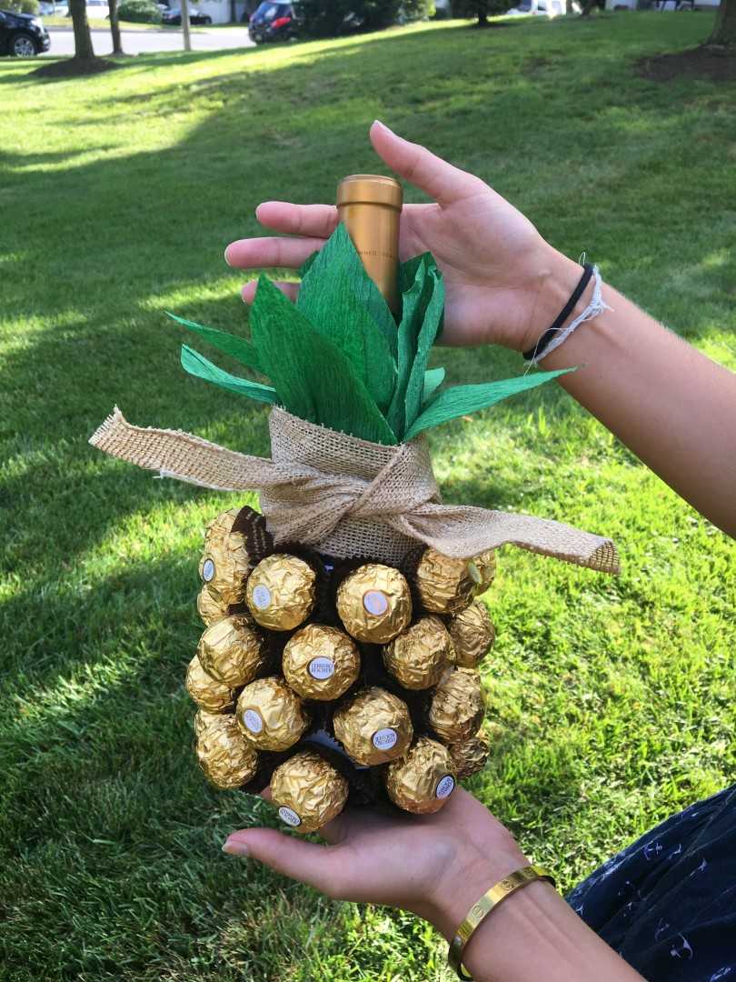 Пробуем сделать ананас из конфет и шампанского своими руками