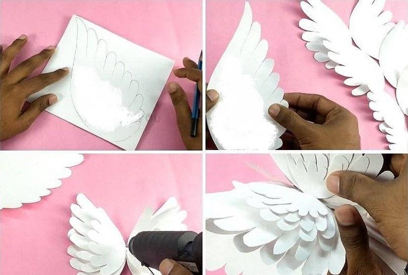 Разрезы должны сойтись до упора и получатся сзади 2 симметричных крыла, отлично держащихся даже без клея.