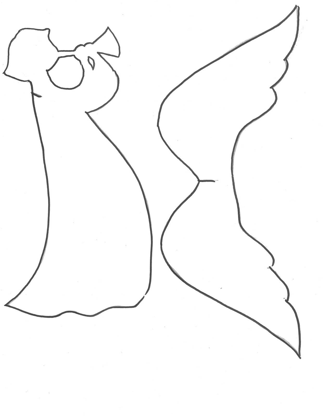 Переведите шаблон на бумагу, сложите пополам и вырежьте, затем просто соедините «юбочку» ангела, предварительно сделав два надреза, как показано на картинке.