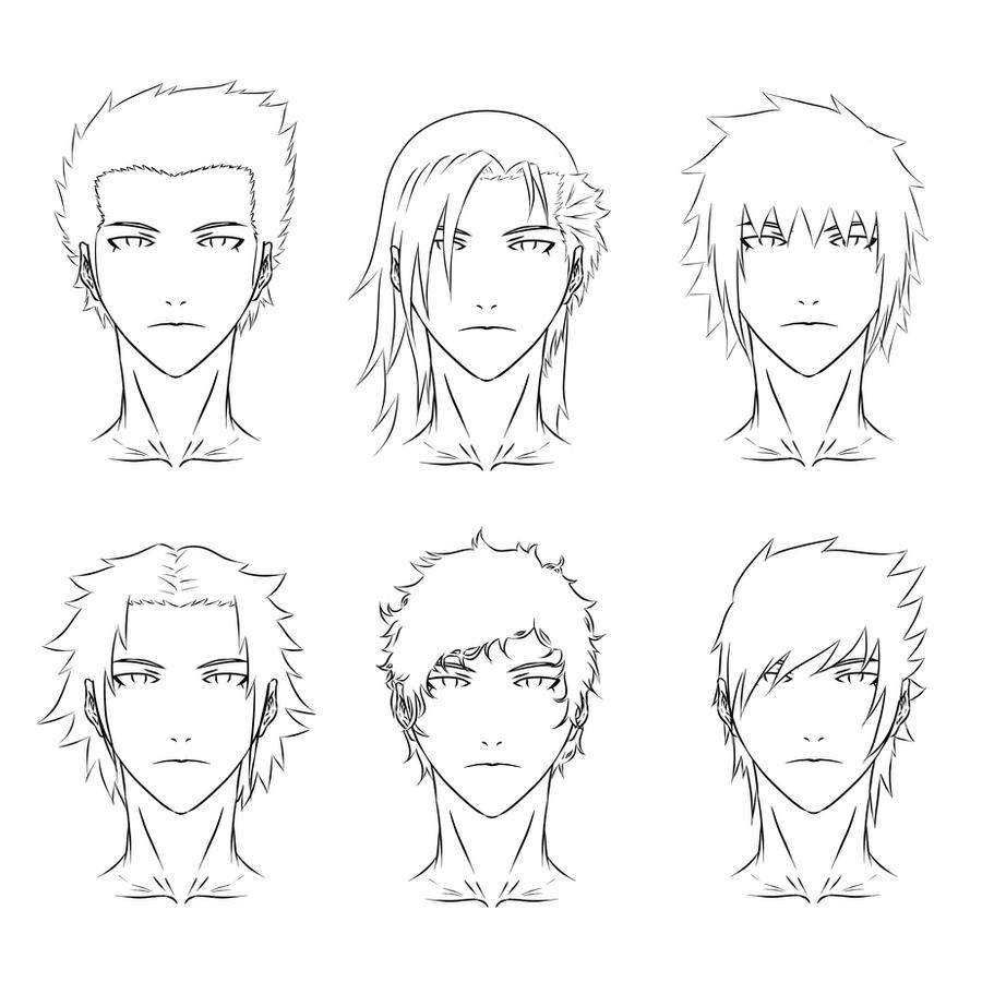 Рисование лиц парней не сильно отличается от изображения лиц девушек. Глаза парней располагаются ближе к центру лица, верхняя линия ушей изображается на уровне верхней части глаза. Рот рисуется в виде улыбки-ухмылки, подбородок и скулы выделяются четкими линиями, это делает лицо парня более мужественным. Для придания выразительности персонажу выделяются мимические морщины.