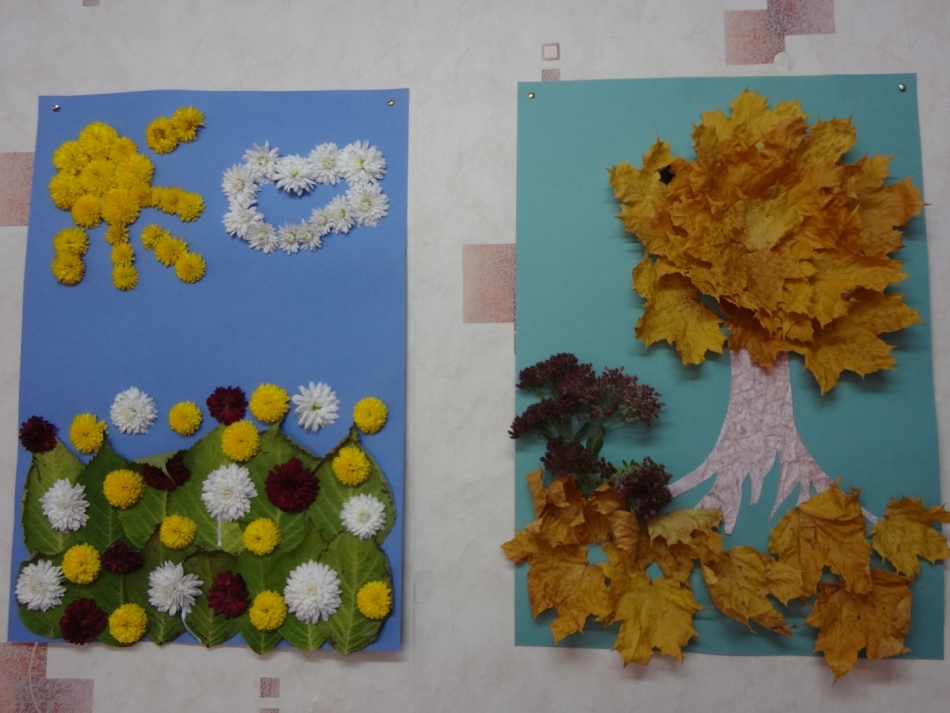 Из листочков клена можно сделать ежа, из березы рыбок, а дубовые листочки напоминают дерево.