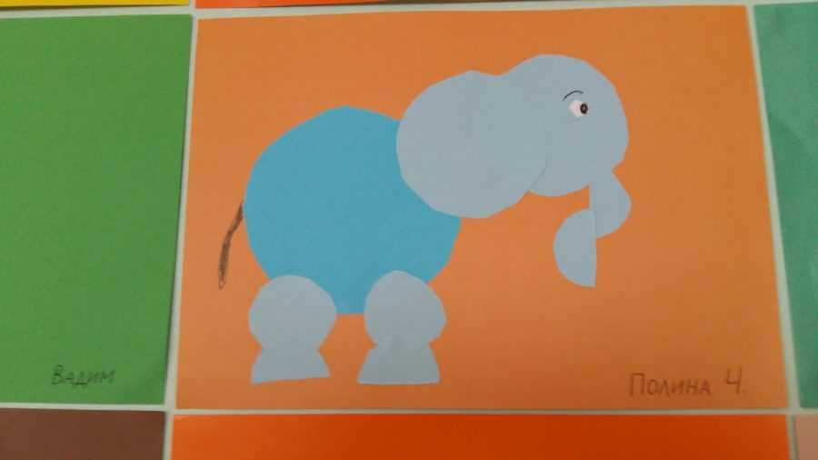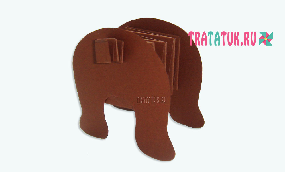 Тоже самое для второй ноги. Из сложенных вдвое маленьких кругов, расположенных друг за другом, делают хобот. Останется лишь нарисовать слону глаз и пририсовать хвостик.