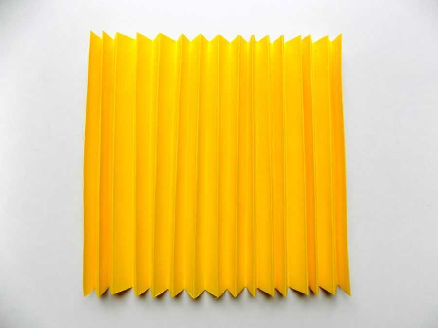 Начинайте мастерить гармошку, перемещая поочередно полосы друг на дружку. Например, сначала нижнюю направьте вверх и прижмите, затем справа полоску и т.д. Использовать клей на данном этапе не нужно.