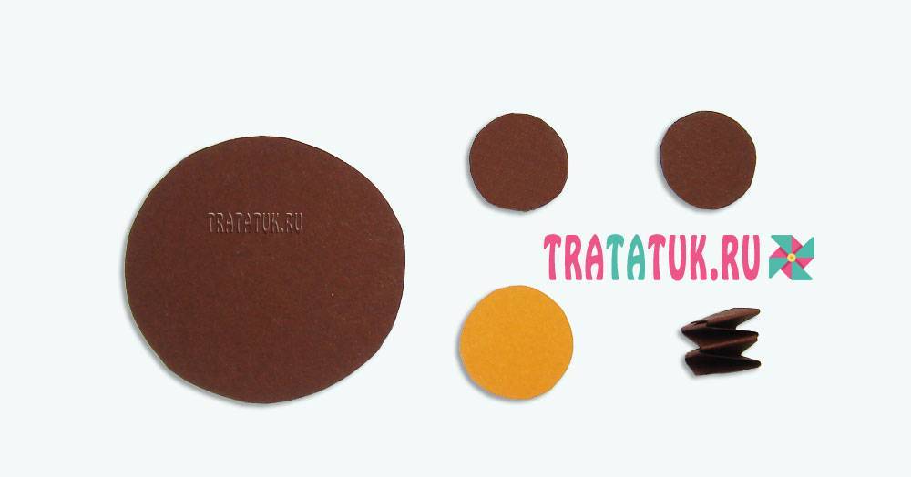 - Два маленьких картонных кружка коричневого цвета – для ушей;