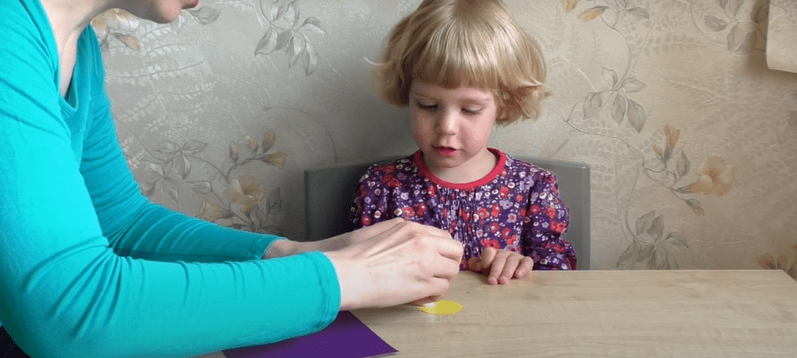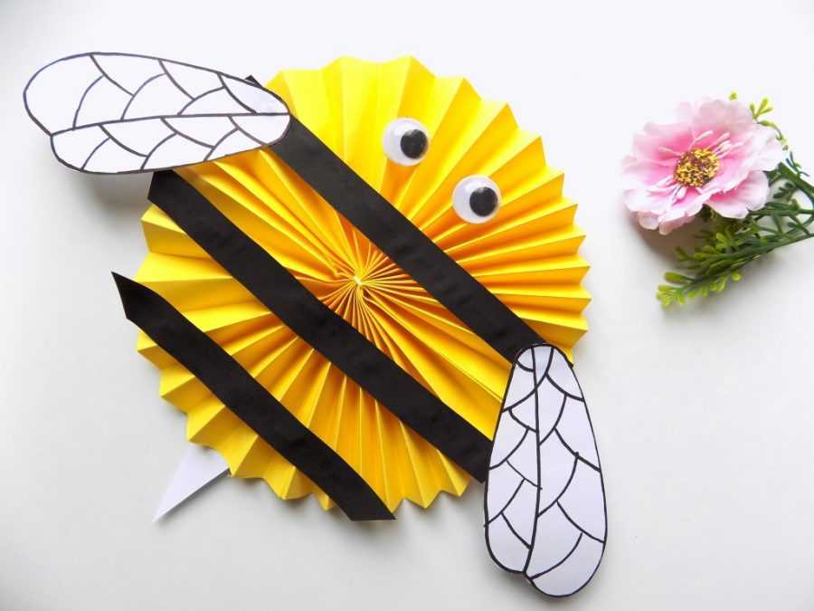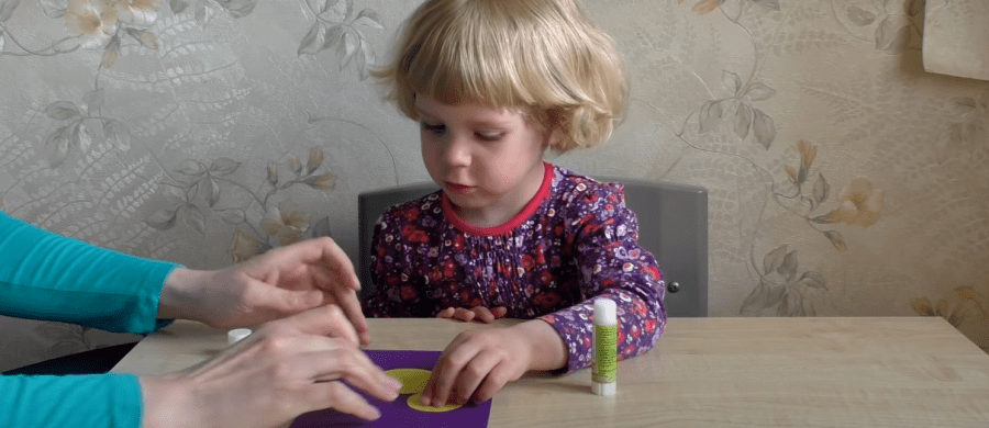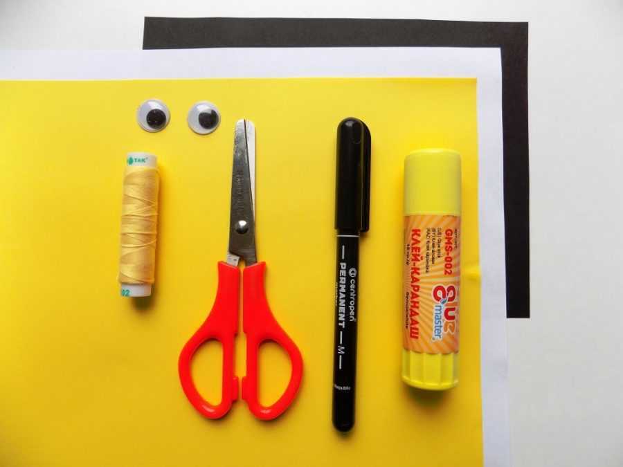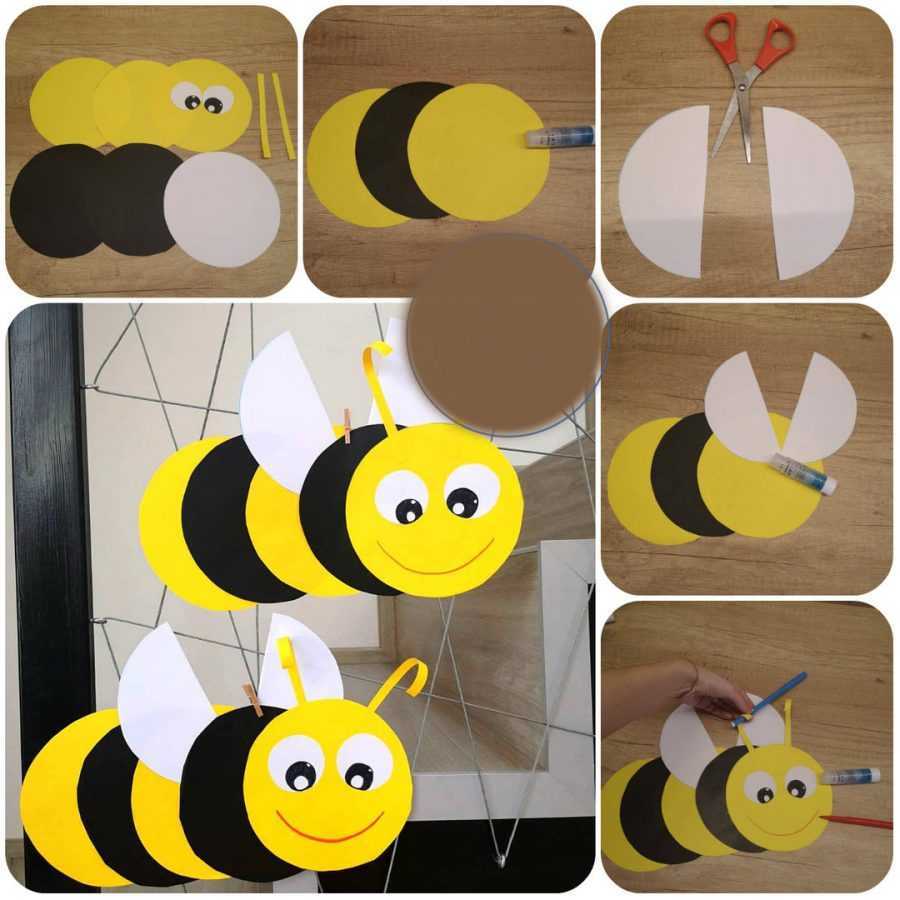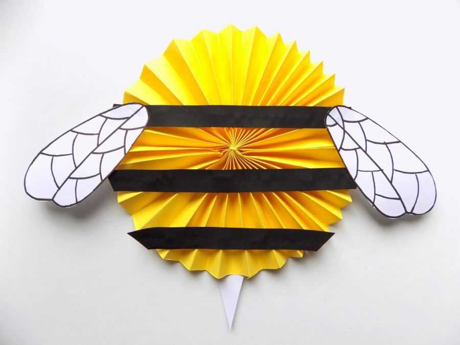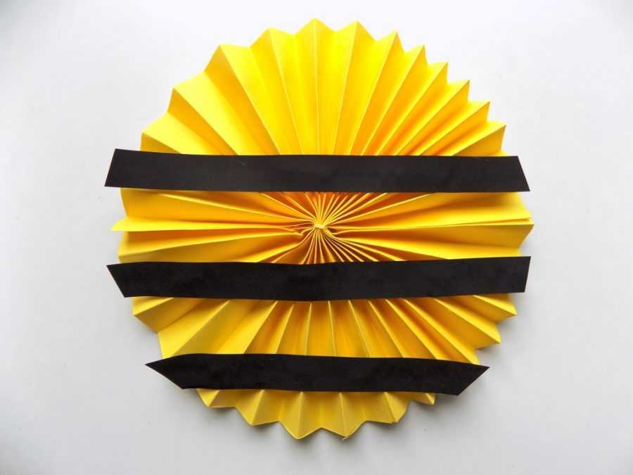 Для этой поделки все круги вырезаются одного диаметра. Черные и желтые круги нужно наклеить внахлест, чередуя цвета.