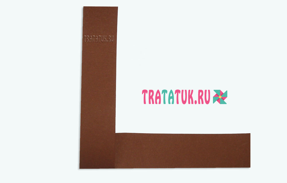 Теперь, когда голова медведя готова, можно приступать к изготовлению туловища. Берем темно-коричневый лист бумаги и вырезаем из него прямоугольник.