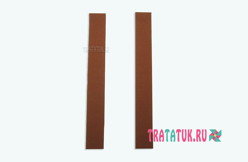 Отрежьте 2 полосы через всю длинную сторону бумаги А4. Если медведь нужен большой, нужно отрезать еще две полосы и приклеить к кончикам первых. Или же изначально использовать бумагу большего формата, чтобы была возможность сразу вырезать полоски. Ширина полос подбирается исходя от величины медведя. В данном мастер-классе – 2 см.