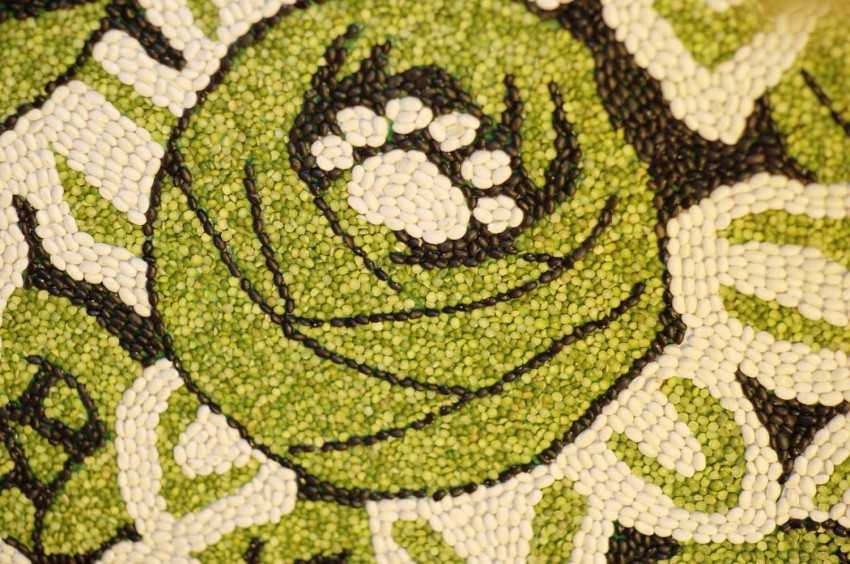 В творческом процессе можно использовать разнообразные крупы, такие как манка и гречка, кукуруза и рис, мак и пшено, для удешевления лучше выбирать сечку из этих круп.