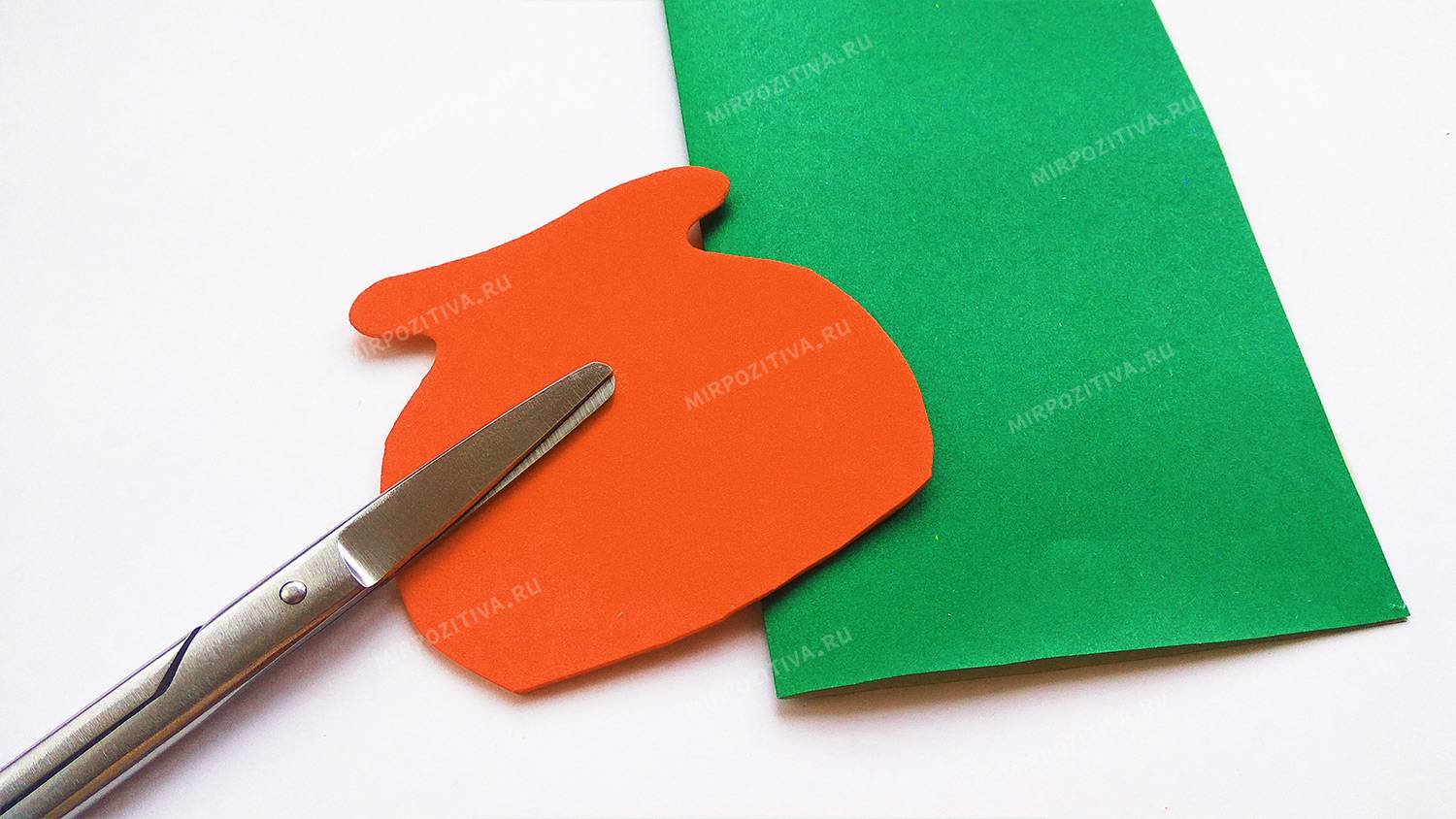 Шаг 3. Теперь сделайте основные детали. Из красного фоамирана или картона вырежьте широкую вазу. Нарисуйте зубочисткой или карандашом очертание и вырежьте по контуру. Можно заполнить вазой всю нижнюю часть открытки.