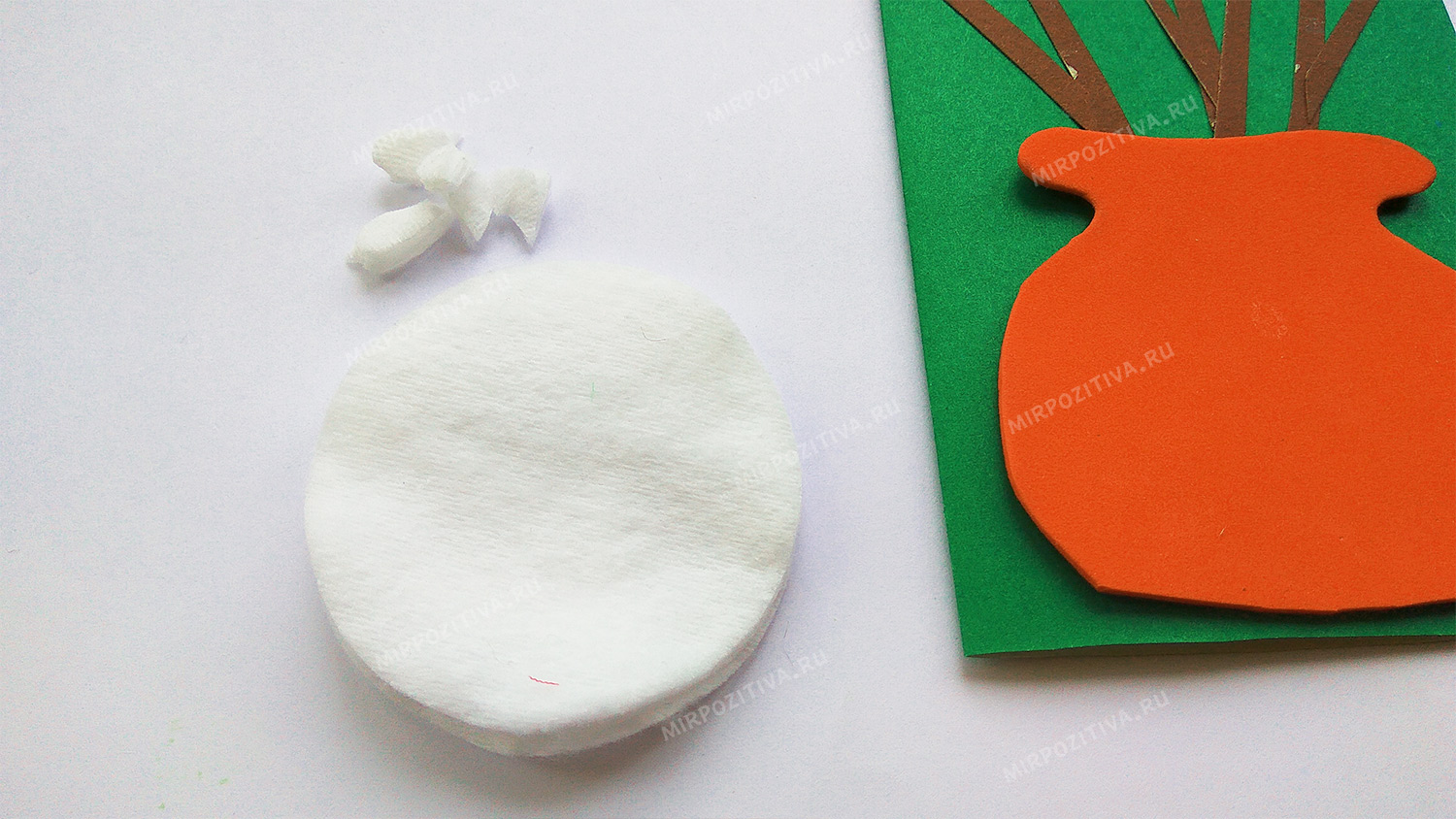 Шаг 6. Возьмите ватные диски. Они будут необходимы для создания вербных котиков. Вырезайте из этих дисков небольшие капельки или кругляшки ножницами. Можно предварительно покрасить в серый или голубой цвет или оставить белыми.