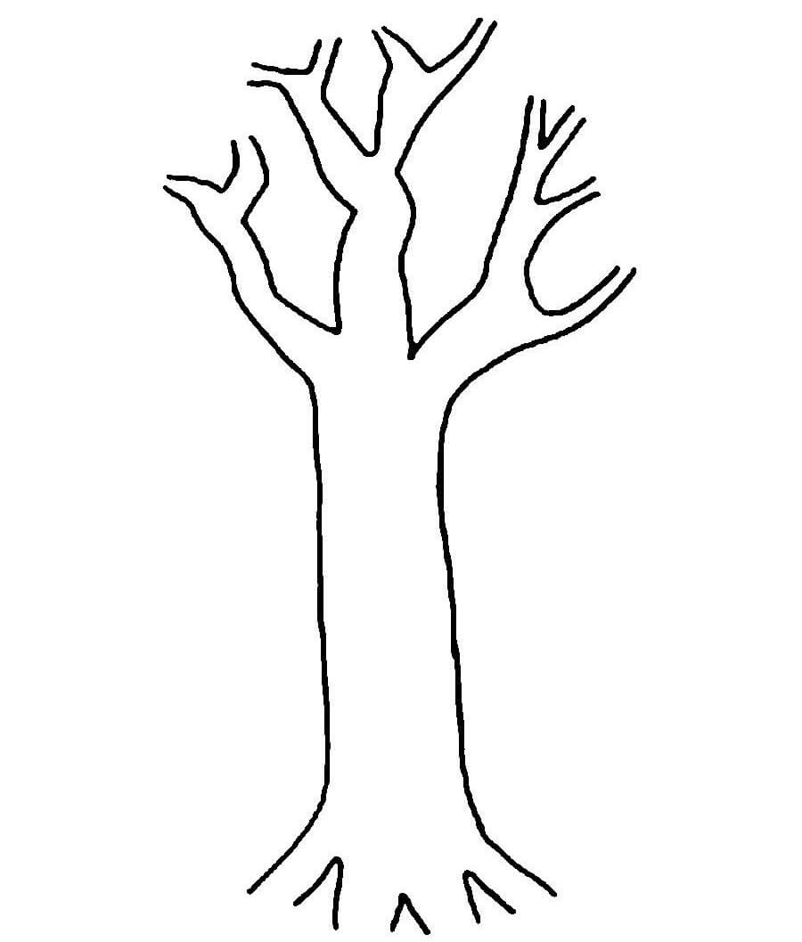 На фоновом листе раскрасьте по шаблону дерево цветными карандашами разных оттенков коричневого цвета.