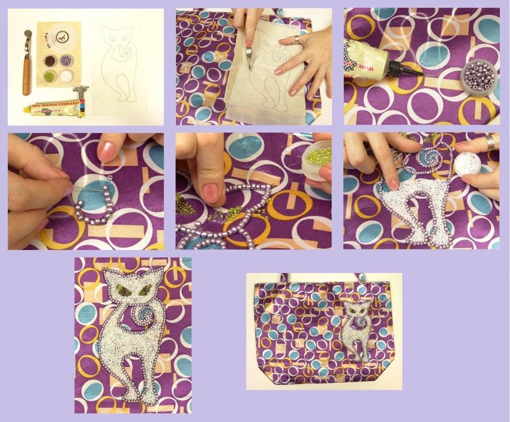 - Декоративная аппликация. Высокая вариативность способов дает широкие возможности по оформлению сумок, протертых джинсов, пледов, диванных подушек и другого интерьерного текстиля.