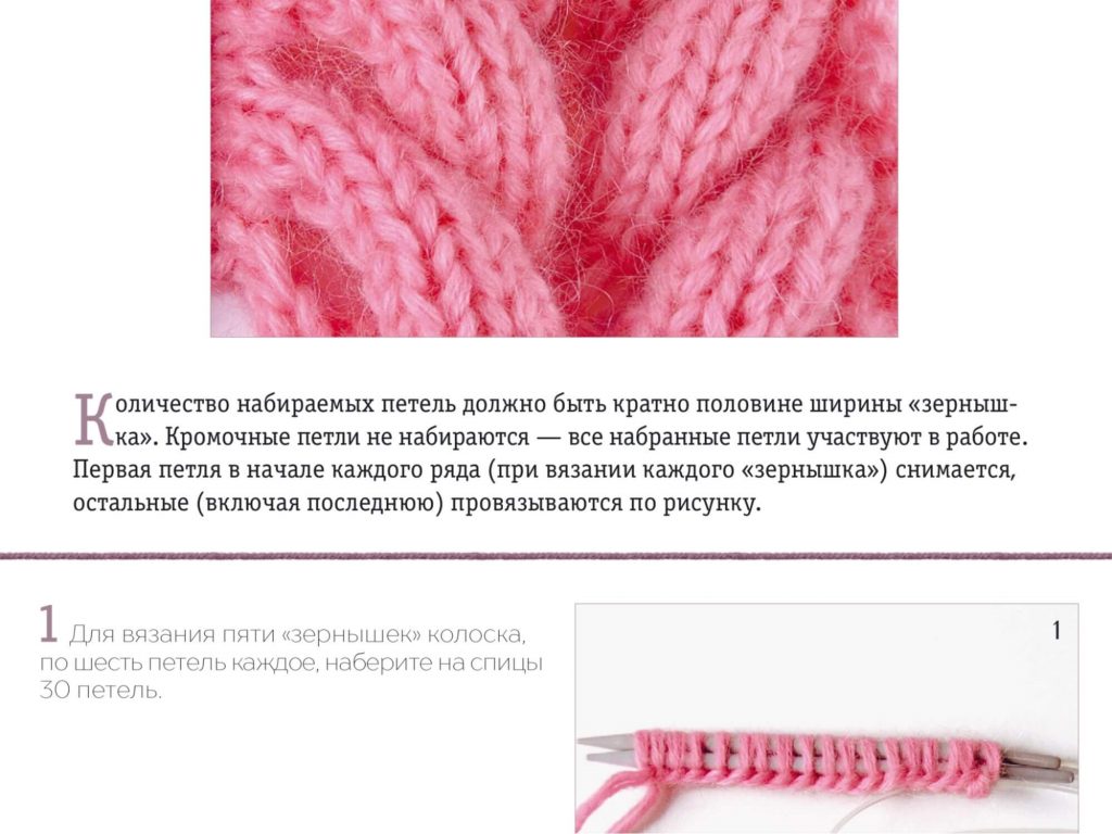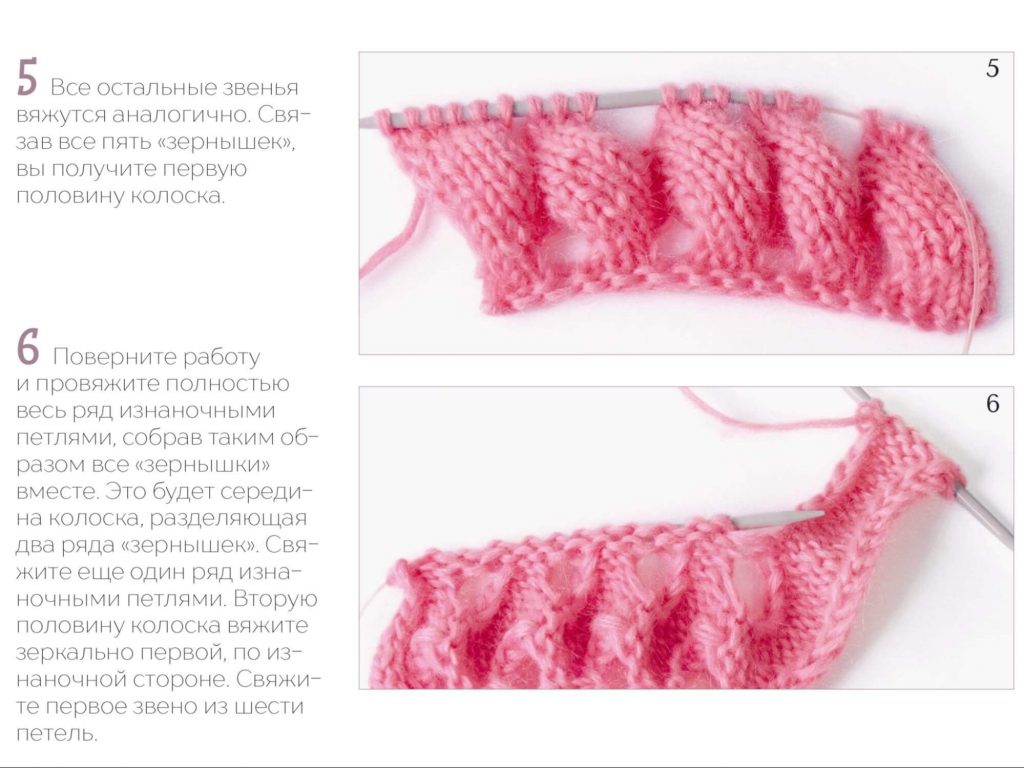 Внимание: начинайте вязание с изнанки. Это нужно для того, чтобы колоски развернулись в противоположную сторону