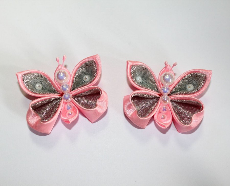 Треугольник сложить пополам и отрезать «донышко» и бока. Для удобства можно использовать зажим, чтобы края ленты не разъезжались. В процессе работы лучше постоянно сравнивать размеры заготовок, чтобы крылья у бабочки были одинаковыми.