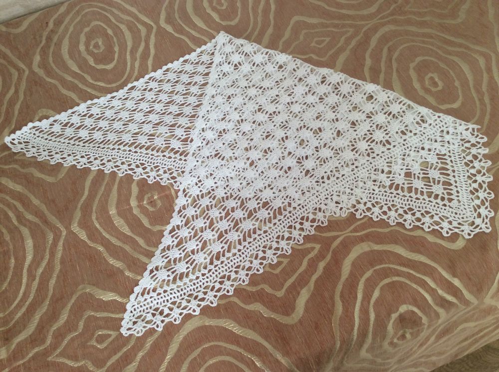 В процессе работы обязательно проверять симметричность изделия и анализировать количество необходимых файлов перед завершением. В конце нужно провязать край. Ажурный женский платок готов.