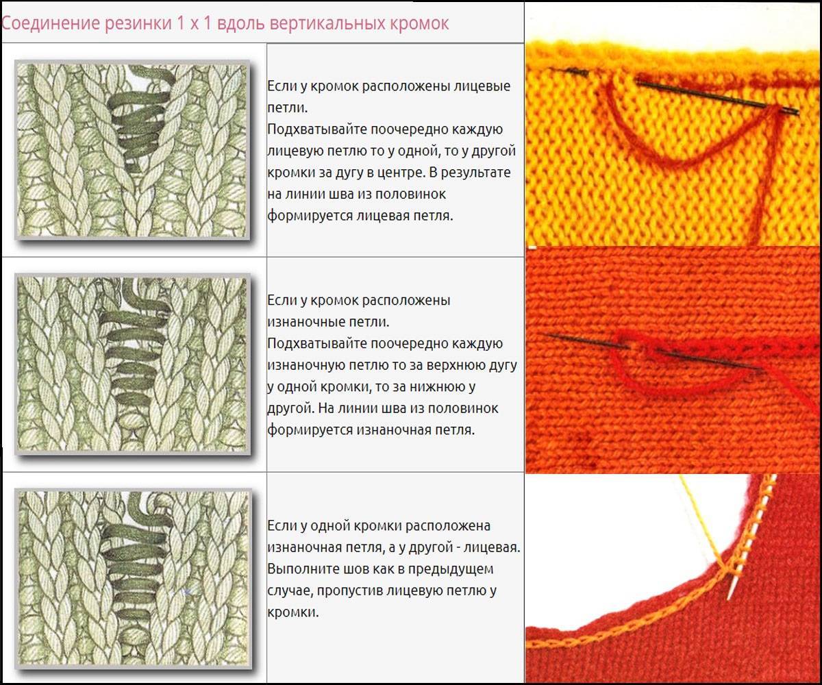 Способы соединения вязаного полотна с лицевой и изнаночной стороны: