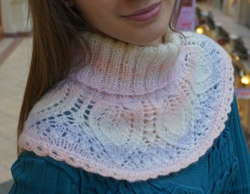 Шарф-манишка вяжется сверху (от шеи) вниз (к плечам).