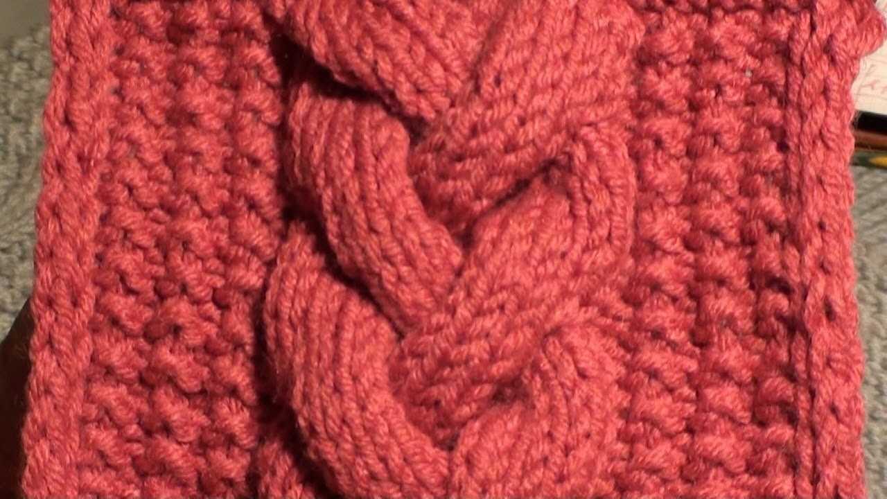 - Две спицы — лицевой гладью. Другие две спицы начинайте вязать узор: изнанка, остальные лицевые, последняя — изнанка.