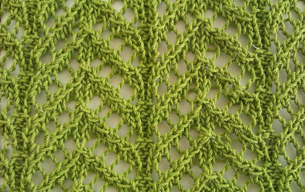 5-й ряд: равномерно прибавить 16 пет. Ширина “окна” = 50 пет. 6-й (изн.) ряд: *2 лиц, 2 изн* – повтор 12 раз, 2 лиц.