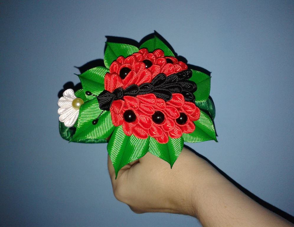 Эта замечательная и трогательная божья коровка канзаши, станет украшением волос, в виде резинки либо заколки.