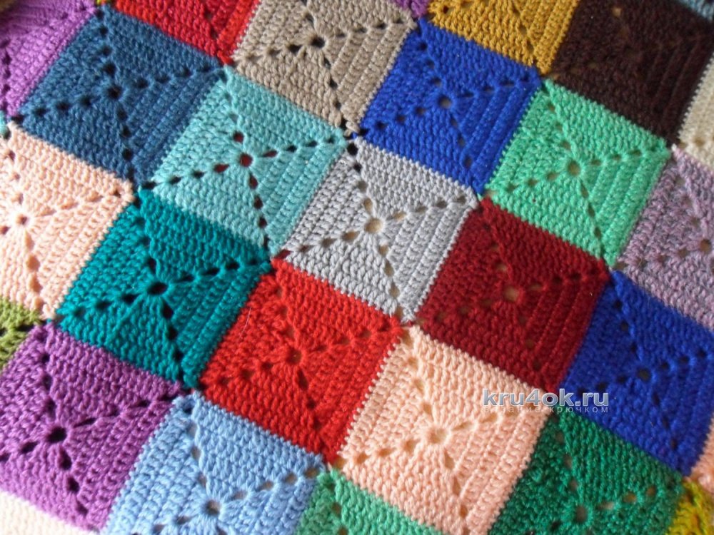 Как видим, связать плед из квадратов совсем несложно. Это намного проще, чем возиться с выкройками или пользоваться уже поднадоевшими спицами.