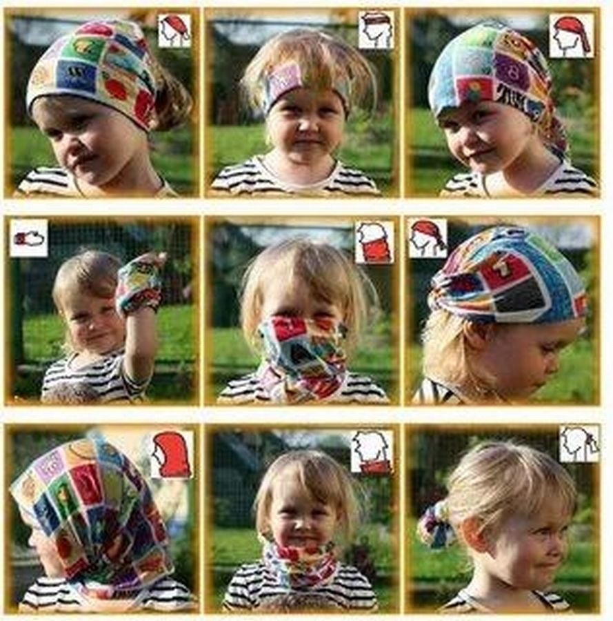 Даю бандану на отсечение, что подавляющее число вариантов использования – их рук дело. Но за это им – спасибо. Как и за то, что бандана стала и детским головным убором. Очаровательные детишки облюбовали с легкой руки их родителей, старших братьев и сестер этот головной убор.