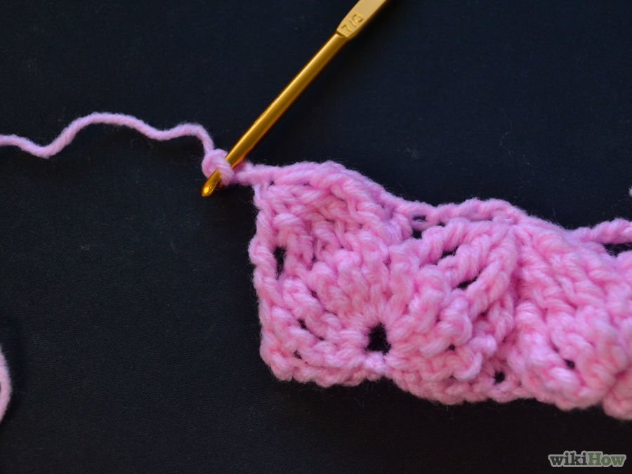 Полотно в верхней части нужно вывязывать аналогично тому, как делалось в самом начале. То есть в нижней петле в центре делаются двенадцать столбиков. С боков же в центральной петле нужно связать по восемь столбиков.