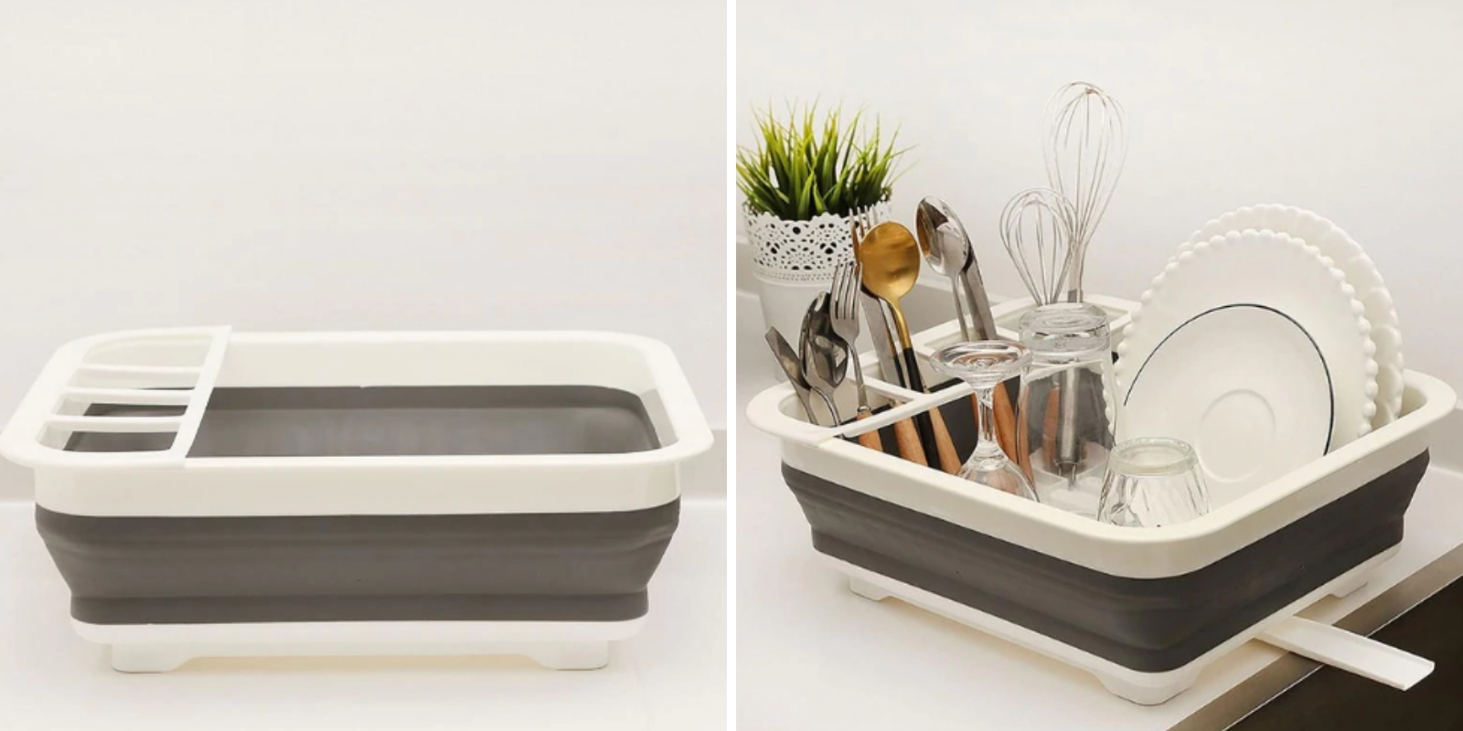 Ещё немного места на столе вы сэкономите с этой складной подставкой для тарелок и не только. А за ненадобностью её можно сложить и убрать в шкаф – она очень компактна.
