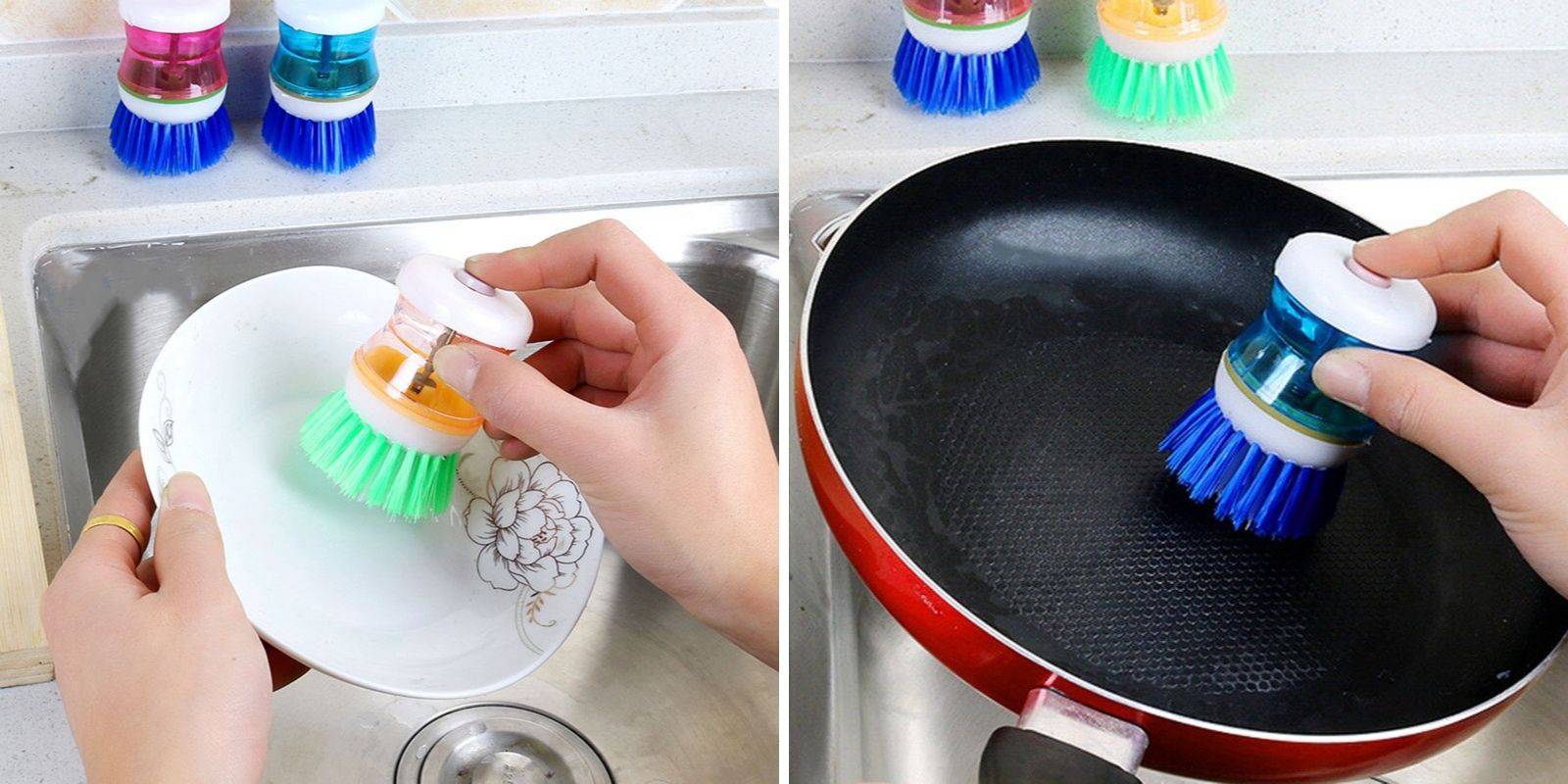Для начала неплохо бы обзавестись хорошим инструментом. Например, такой щёткой. Моющее средство можно заправлять прямо внутрь, а чистит она очень здорово.