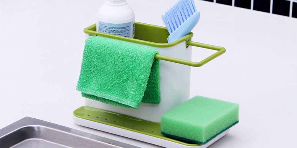 Не помешает и удобная подставка для хранения всяких щёток, губок, салфеток и моющих средств. Как вам эта? Продавец предлагает пять цветов изделия на выбор.