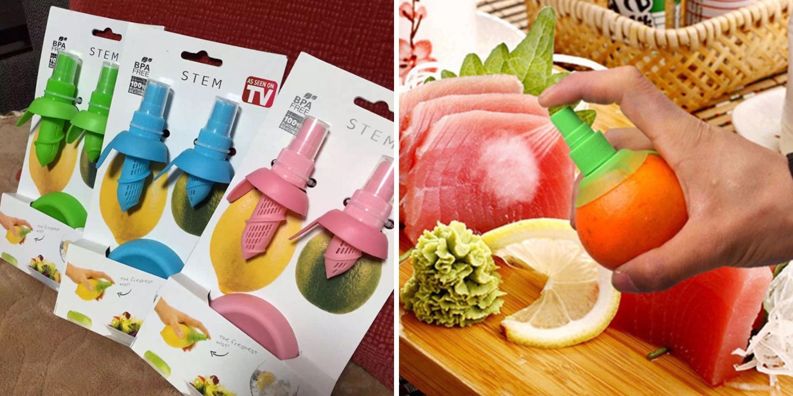 По рецепту нужно сбрызнуть блюдо лимонным соком, а потому вы выжимаете его руками? Оставьте это варварство! Пользуйтесь новейшими технологиями. Гаджет подойдёт также для лайма, апельсина и других цитрусовых. Продаётся набором из двух штук.