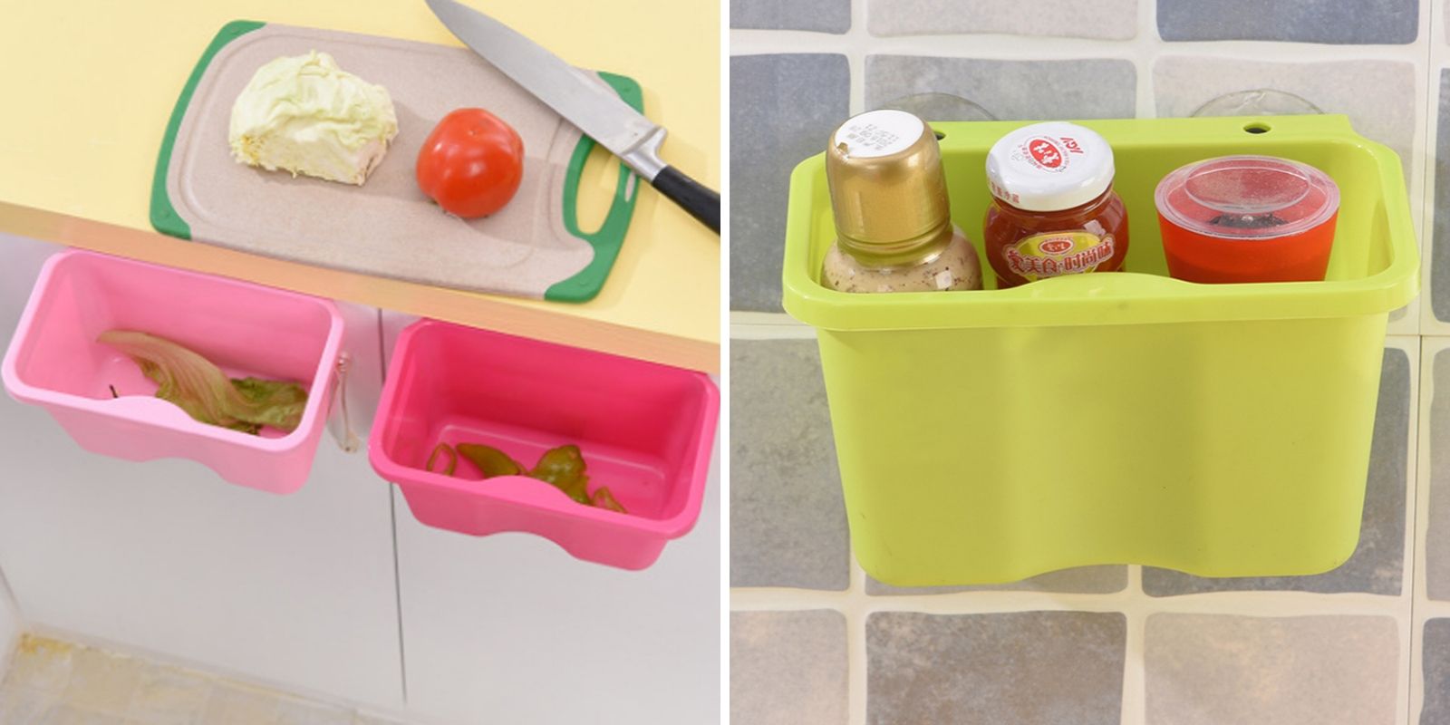 Ещё один полезный апгрейд для дверцы шкафа – навесной контейнер, который пригодится во многих случаях. Например, в него удобно скидывать мусор во время готовки. Также ёмкость можно разместить на стене и использовать как подставку для разных баночек.
