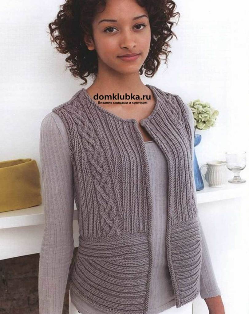 Они могут быть свободными, а могут быть приталенными. Могут быть обычной длины, или сверхдлинными, и при этом смотреться гармонично. Попробуем рассмотреть несколько вариантов вязаных спицами женских жилеток, которые любая рукодельница в состоянии создать сама.