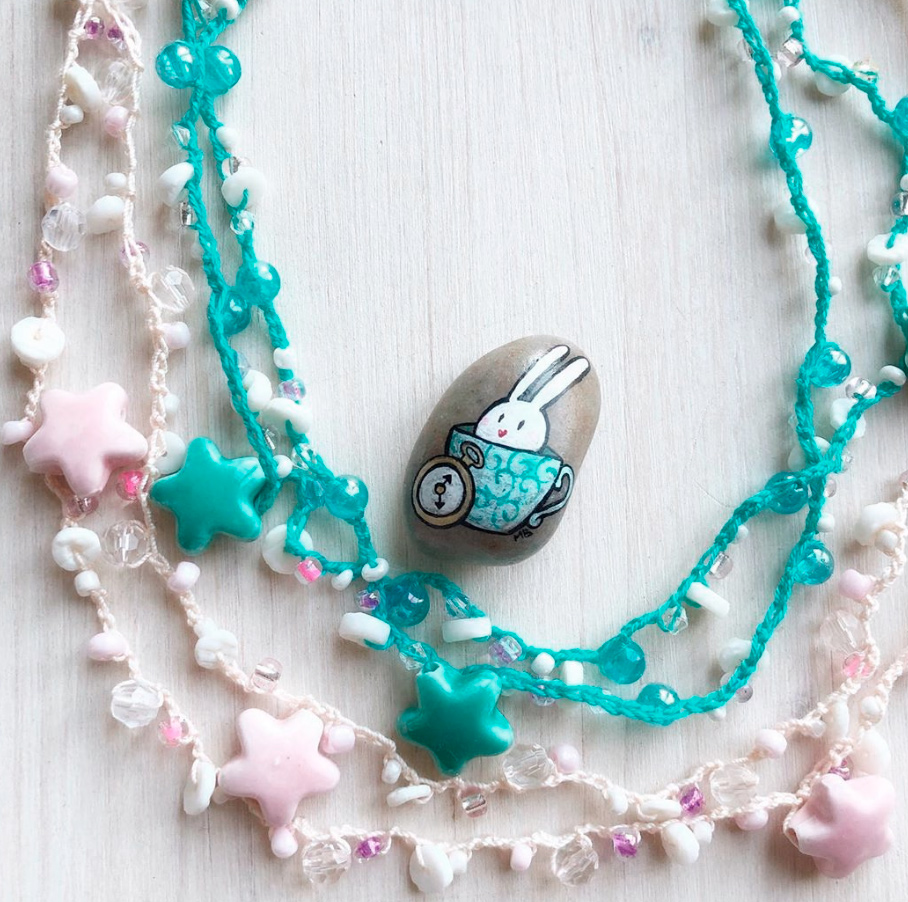 О том, как сделать колье-жгут своими руками, в этой публикации мы уже говорили. И это здорово: значит, уже можно экспериментировать со схемами и цветами, вывязывая сложные узоры.