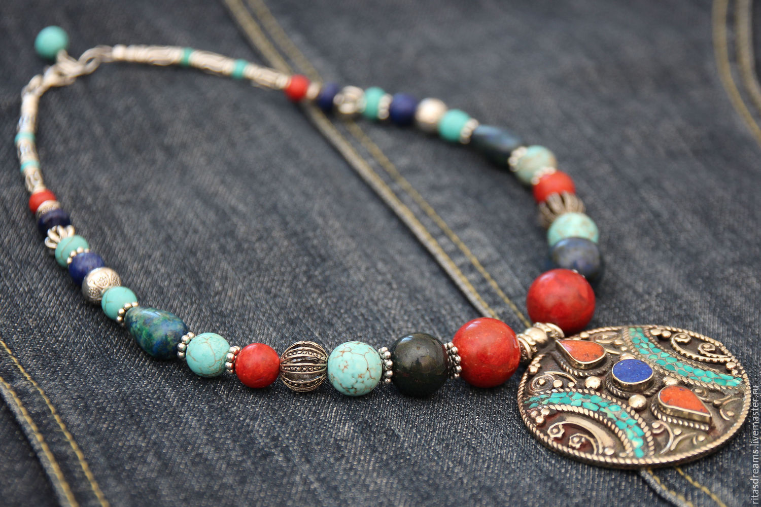 - По цвету. Если колье, ожерелье изготавливают в разных тонах, то учитывают их сочетаемость. Так, белый оттенок совместим с любой гаммой, оранжевый плохо смотрится с голубым и т.д.
