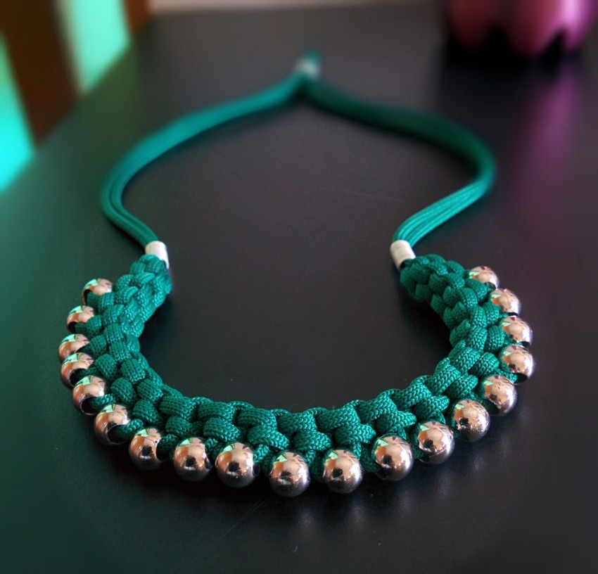 Красивые, современные, модные варианты колье сочетают в себе сразу несколько разных стилей и направлений, плетутся из разных по фактуре и цвету материалов с добавлением не традиционного материал – кожаных ремешков, разноцветных перьев, атласных лент и так далее.