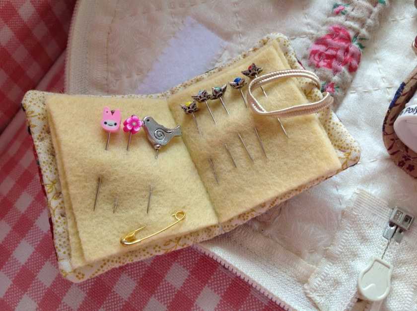 Уголок подшивают по контуру большего образца, имитируя внутреннюю поверхность традиционного конверта. Особенность подобной игольницы заключается в возможности подкалывать иголки и булавки в вертикальном положении словно опуская в раскрытый конверт.