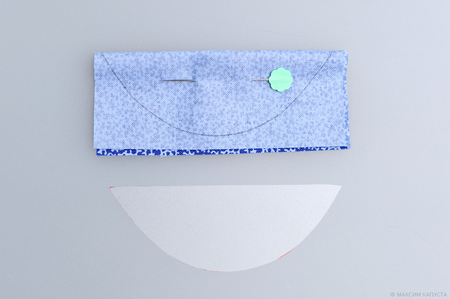 Для удобства сшивания лучше проутюжить среднюю деталь, загнув верхний и нижний край внутрь к изнанке.