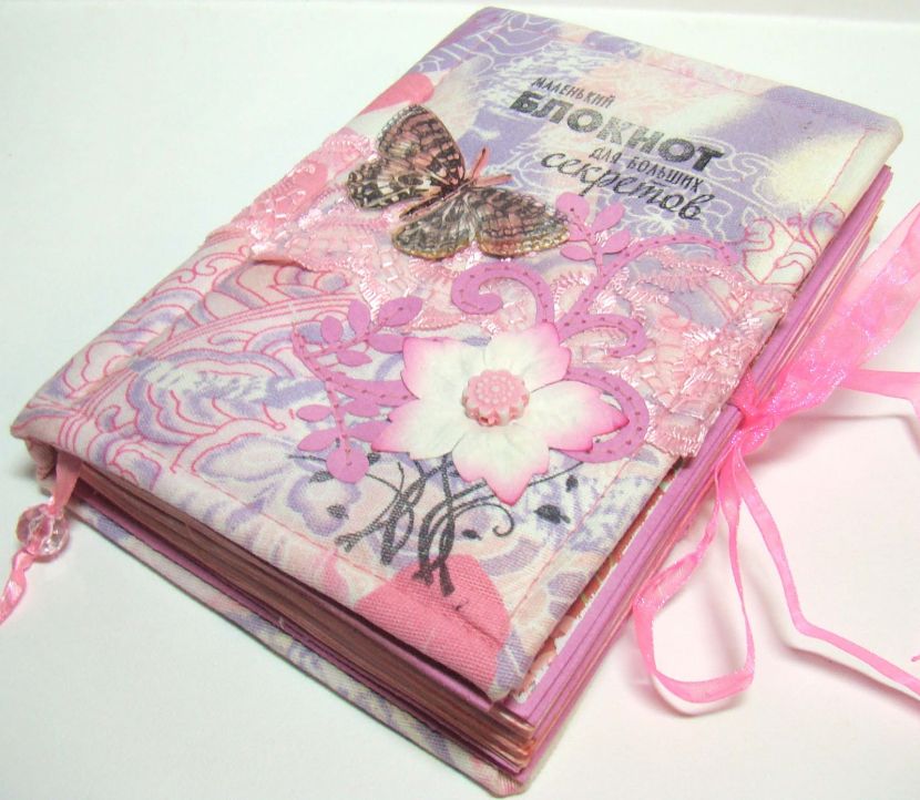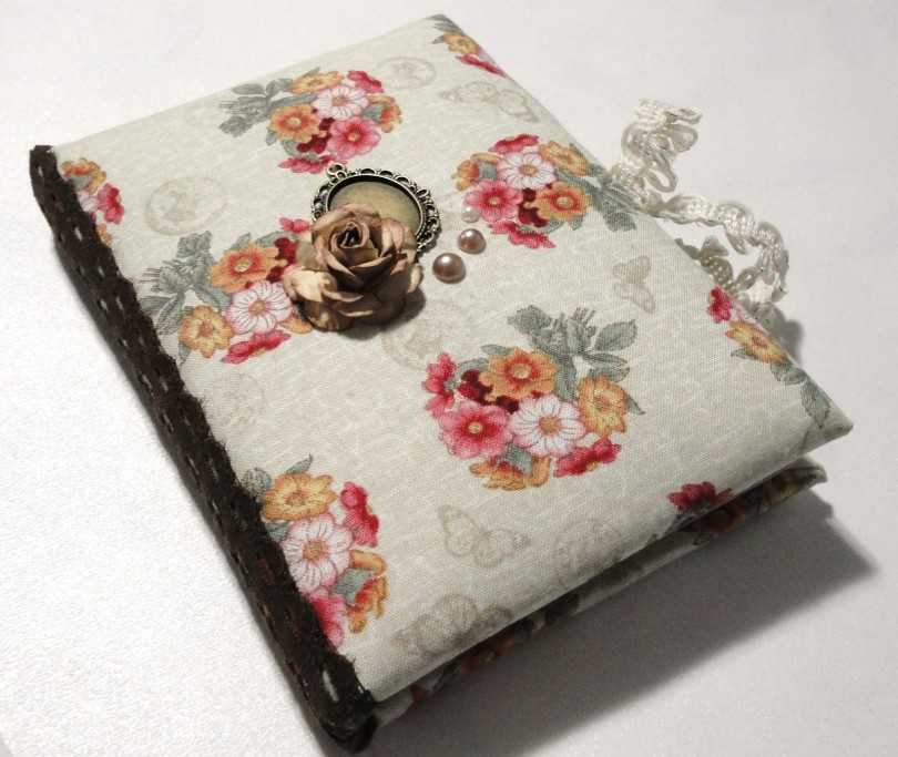 Опытные мастера рекомендуют обложку сначала обернуть тонким слоем флиса, а сверху уже тканью. Только после этого прикрепить на блокнот. Простая и недорогая заготовка блокнота станет основой для декорирования в технике скрапбукинг.