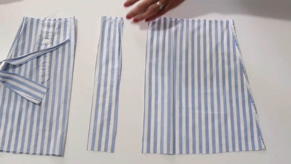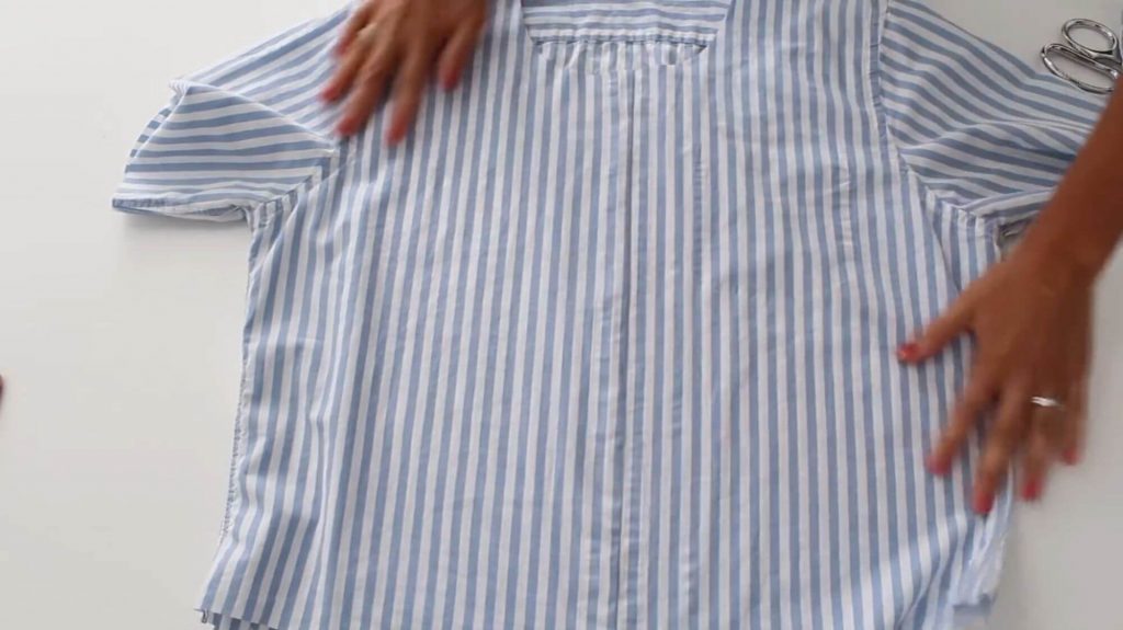 - Если у рубашки были длинные рукава, их отрезают, оставляя небольшой рукавчик, выполняют обработку среза.