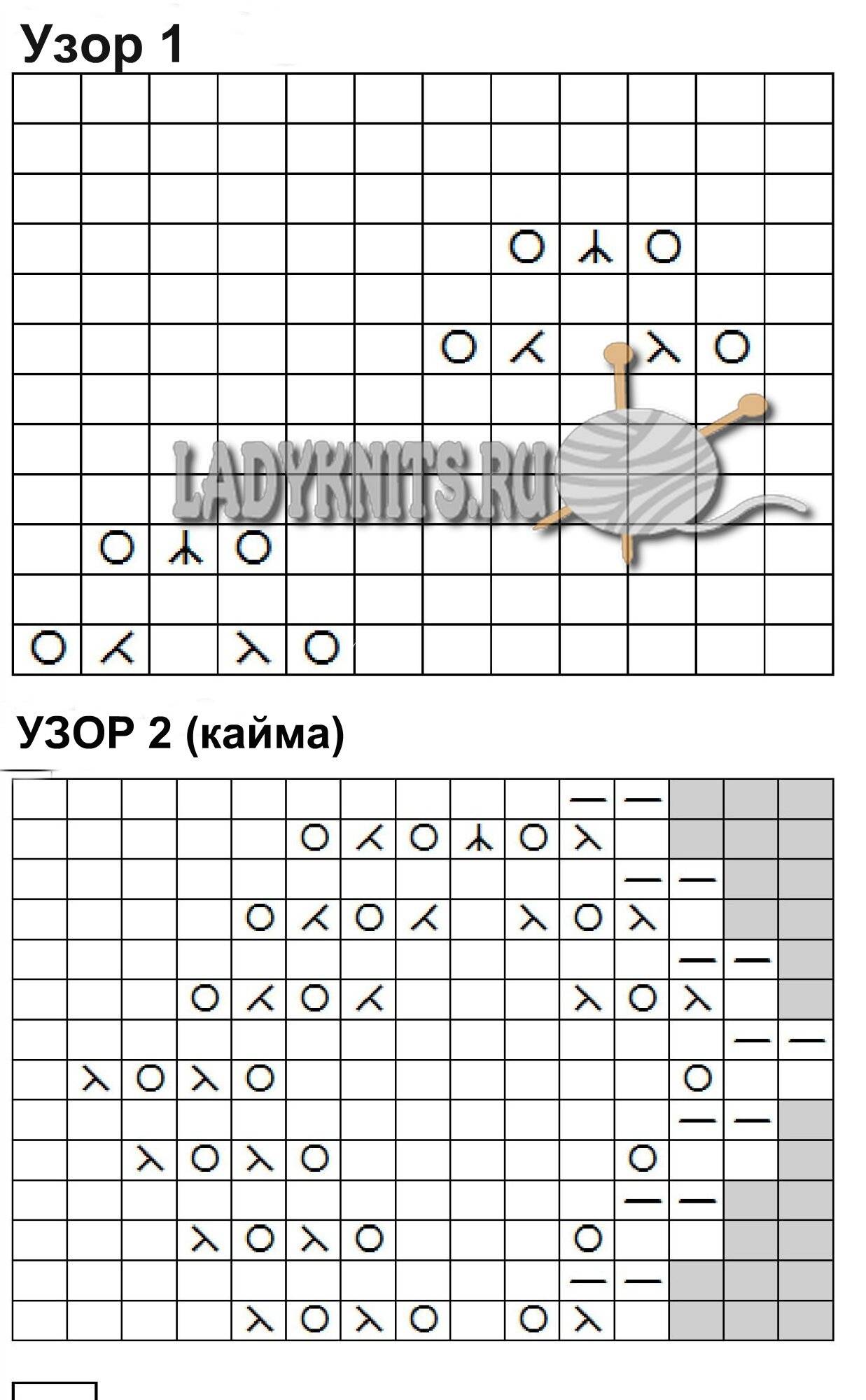 Ажурный узорчик вяжем строго по схеме, приступая к работе с изн. стороны: