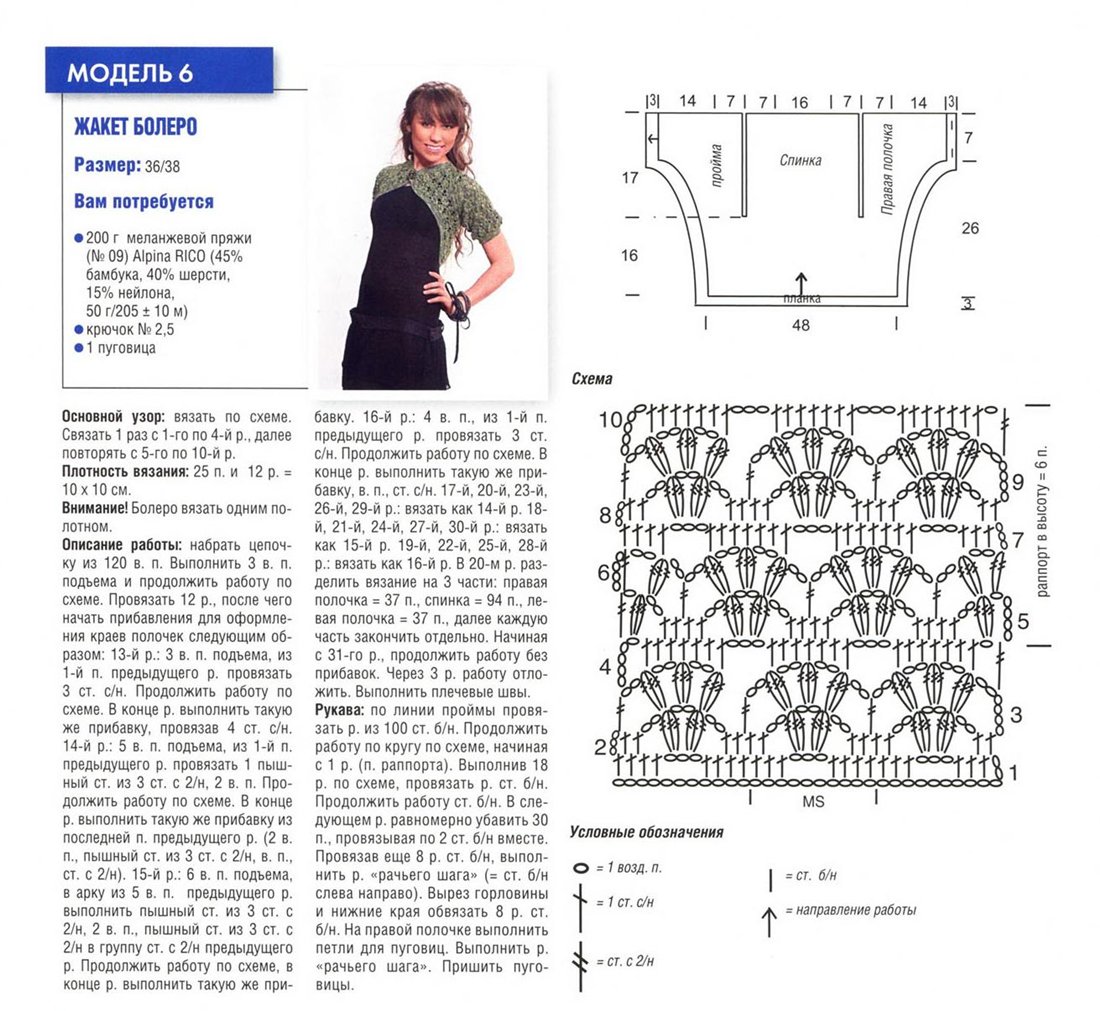 Как связать болеро крючком: условные обозначения
