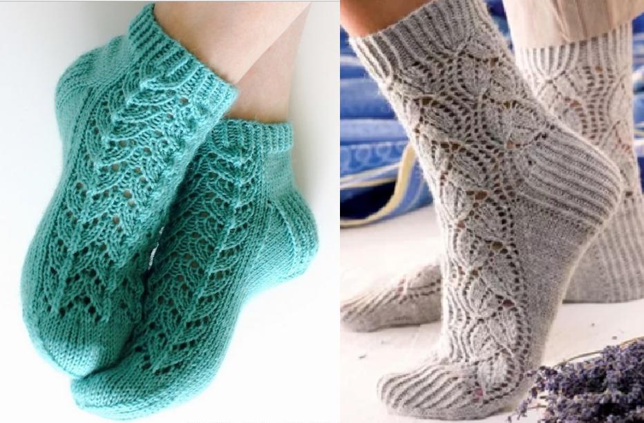 Еще один интересный вариант вязания носочков ажурной вязкой мы не могли упустить. Особенностью этой модельки является то, что их можно вязать хлопковой или бамбуковой пряжей и носить в теплое время года.