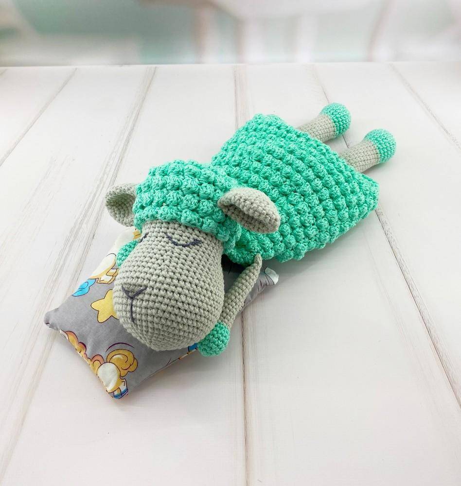 Мешочек остается засунуть в готовую вязаную игрушку. Она должна быть небольшой и простой в исполнении. Ярким тому примером является колобок или улитка. На худой конец можно сначала связать подушку. Даже такая поделка пригодна к оживлению. Для этого к верху подушки крепится голова, а к краям – лапки или ладошки.