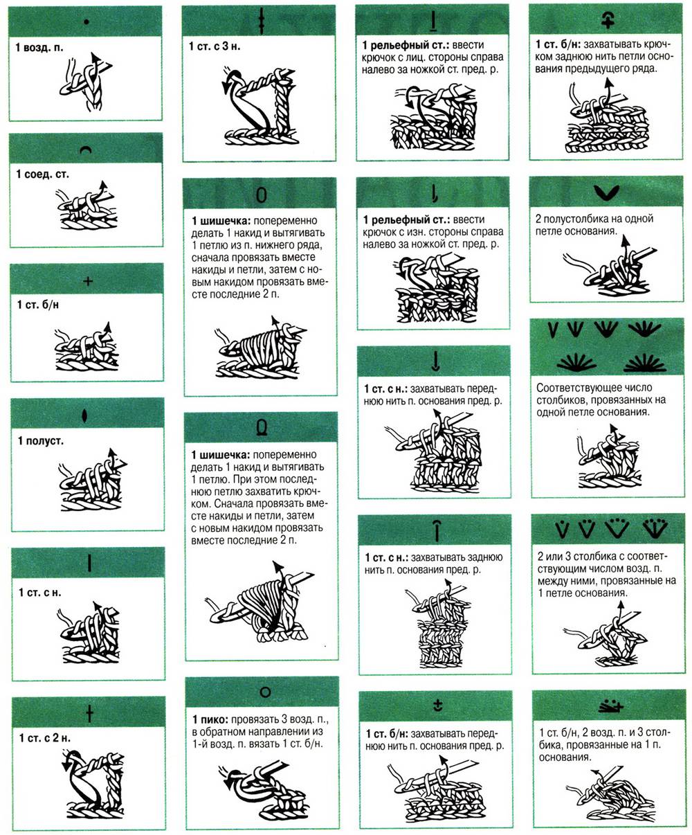 Как научиться читать сложные схемы крючком и вязать сложные столбики на ножках