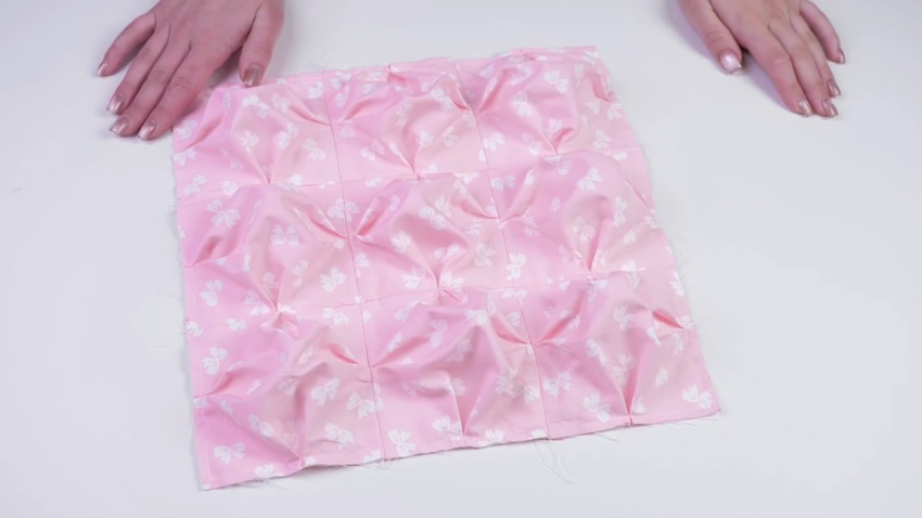 Обратите внимание, что на каждом нарисованном прямоугольнике сделайте складки по всем четырем сторонам. Для удобства заколите подушечки булавками.