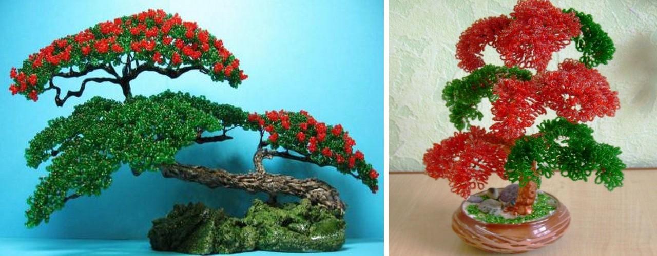 Предлагаем вам несколько наиболее удачных вариантов бонсай из бисера, которые вы можете взять за основу при изготовлении своего дерева.