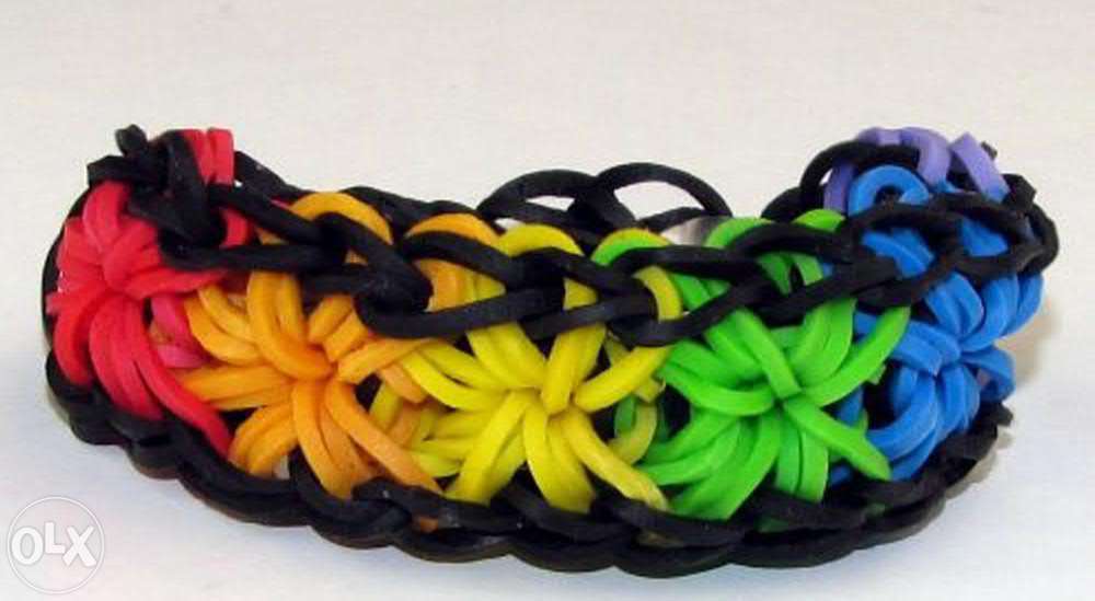 Сделать такой браслет Вы можете как на станке, так и на рогатке. Сделанные браслеты ничем не будут отличаться, даже когда сделаны совершенно по-разному. Для выполнения плетения Вам надобится много ярких резиночек, станок для плетения, крючок, замочки для браслета. Выбирайте прочные резинки, которые не лопнут во время плетения.